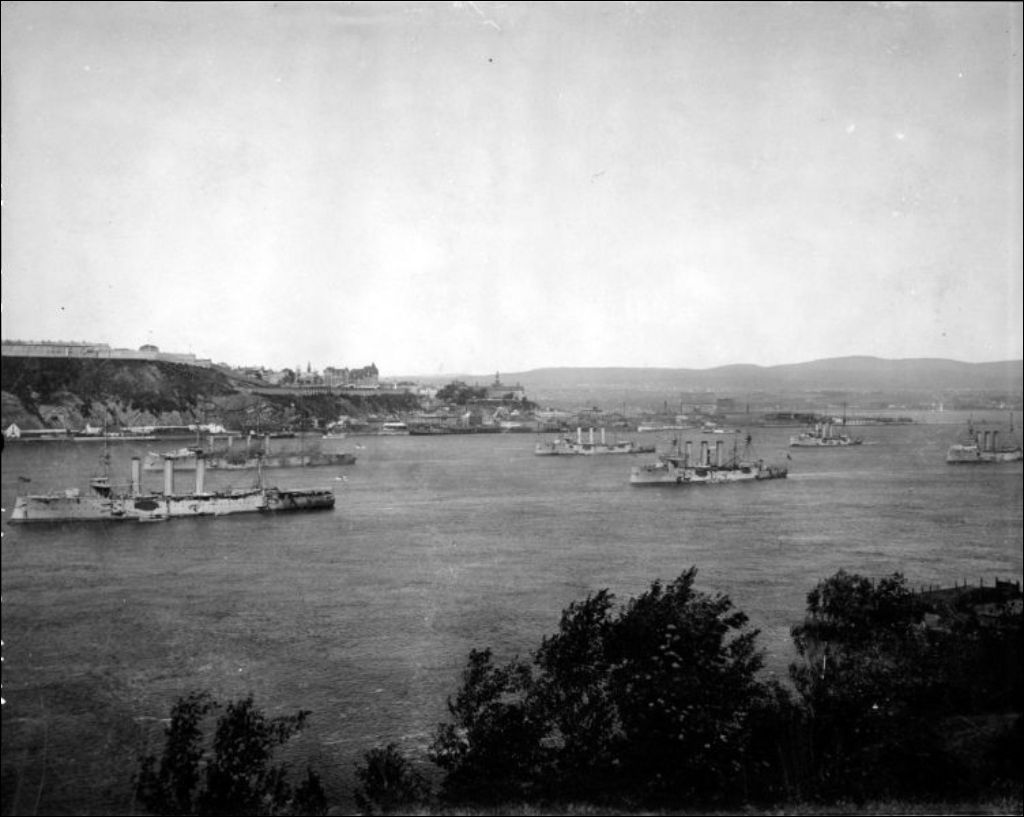 Navires sur le fleuve Saint-Laurent devant Québec, [Vers 1900], Archives nationales à Québec, Fonds J. E. Livernois Ltée, (03Q,P560,S1,P522), Photographe non identifié.
