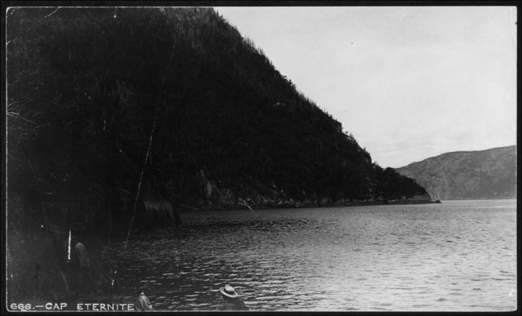 Vue sur le Cap Éternité, [vers 1900], Archives nationales à Québec, Fonds J. E. Livernois Ltée, (03Q,P560,S1,P666), Photographe non identifié.