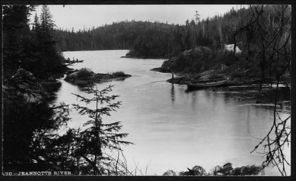 Embarcations et pêcheurs sur la rivière Jeannotte, [vers 1900], Archives nationales à Québec, Fonds J. E. Livernois Ltée, (03Q,P560,S1,P70), Photographe non identifié.