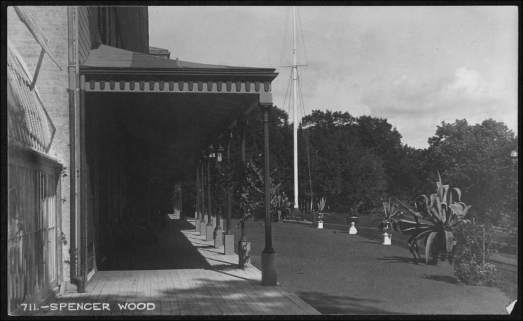 Véranda de la résidence Spencer Wood, Sillery, [vers 1900], Archives nationales à Québec, Fonds J. E. Livernois Ltée, (03Q,P560,S1,P711), Photographe non identifié.