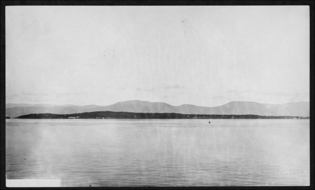 Vue éloignée de Grosse-Île, [vers 1900], Archives nationales à Québec, Fonds J. E. Livernois Ltée, (03Q,P560,S1,P76), Photographe non identifié.