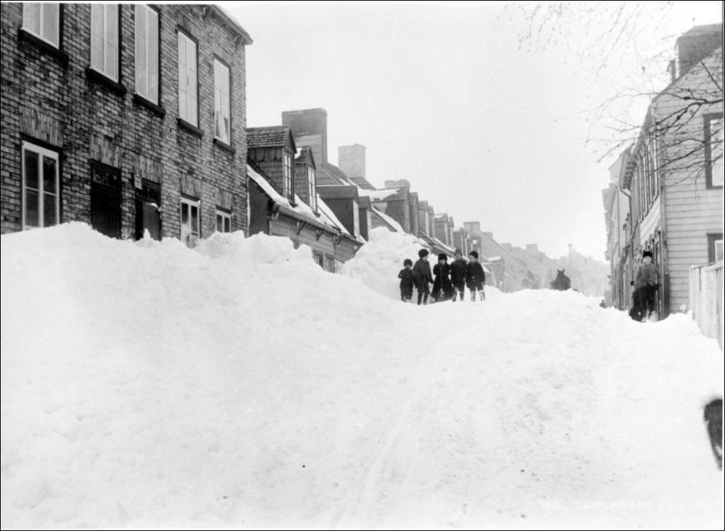 Rue O'Connell en hiver, [vers 1900], Archives nationales à Québec, Fonds J. E. Livernois Ltée, (03Q,P560,S1,P765), Photographe non identifié.