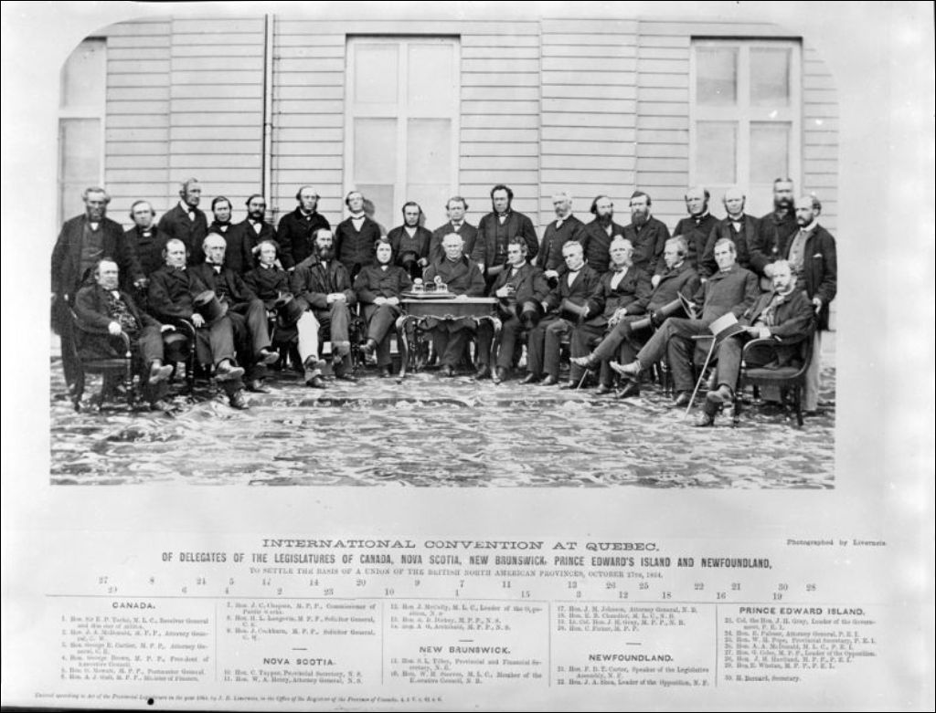 International convention at Quebec of delegates of the legislatures of Canada, Nova Scotia, New Brunswick, Prince Edouard,'s Island and New Foundland, october 27th 1864: Étienne-Paschal Taché, J.A. MacDonald, George-Étienne Cartier, George Brown, O, Mowatt, A.J. Galt, J.C. Chapais, H. Langevin et J. Cockburn