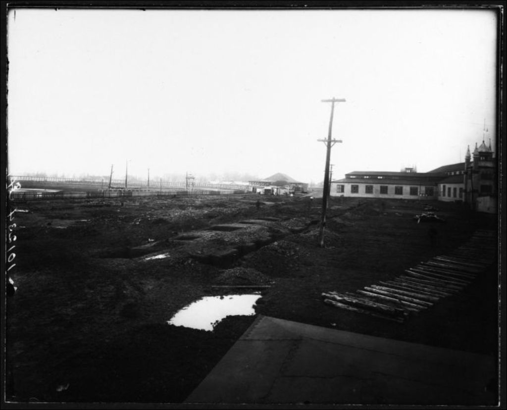 Chantier de construction du pavillon des expositions pour le 25ième anniversaire du Mérite agricole (1890-1915) ., 1915, Archives nationales à Québec, Fonds J. E. Livernois Ltée, (03Q,P560,S2,D2,P101234-1), Photographe non identifié.