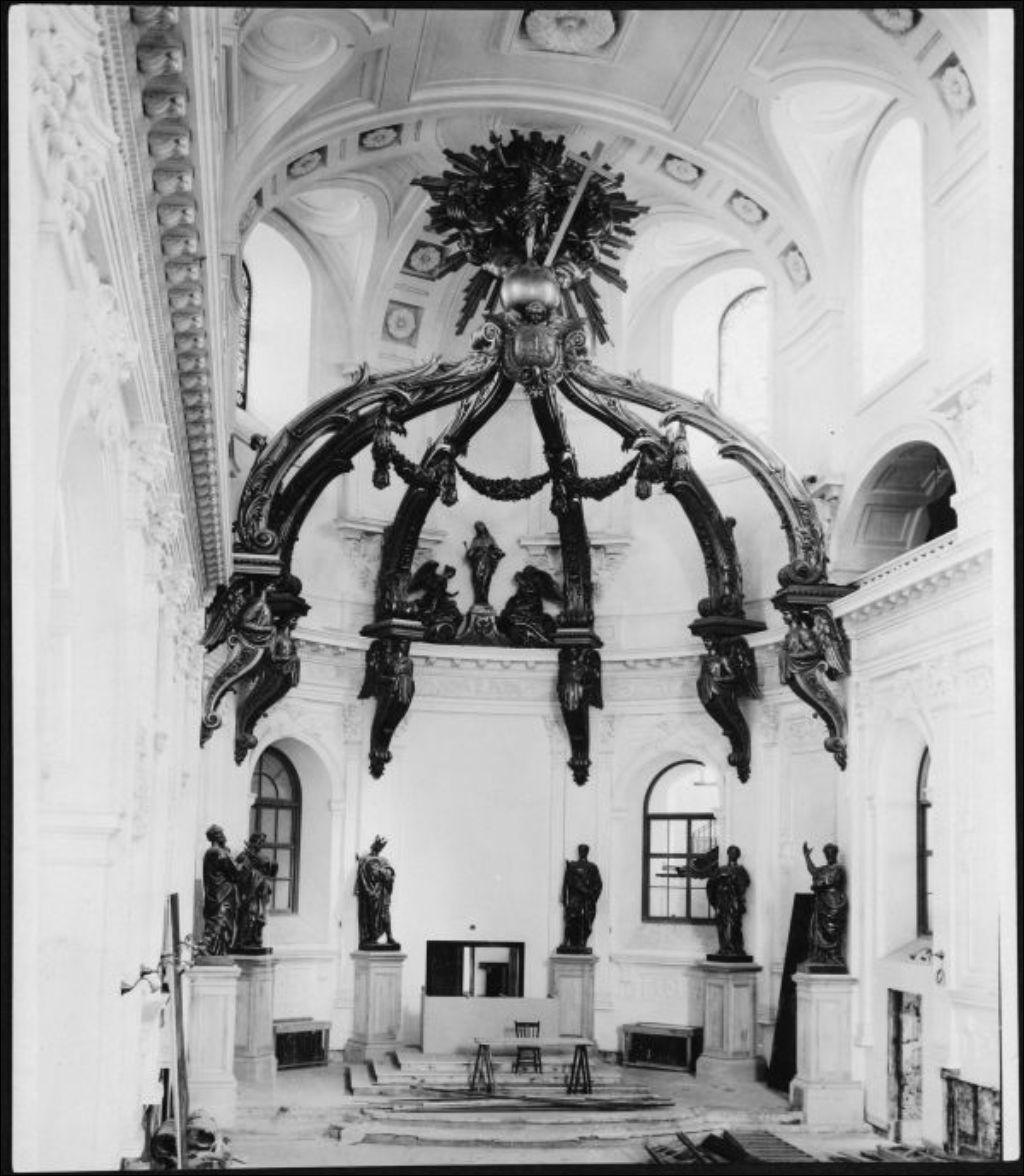 Intérieur de la basilique-cathédrale Notre-Dame-de-Québec, 1923, Archives nationales à Québec, Fonds J. E. Livernois Ltée, (03Q,P560,S2,D2,P116403-8), Photographe non identifié.