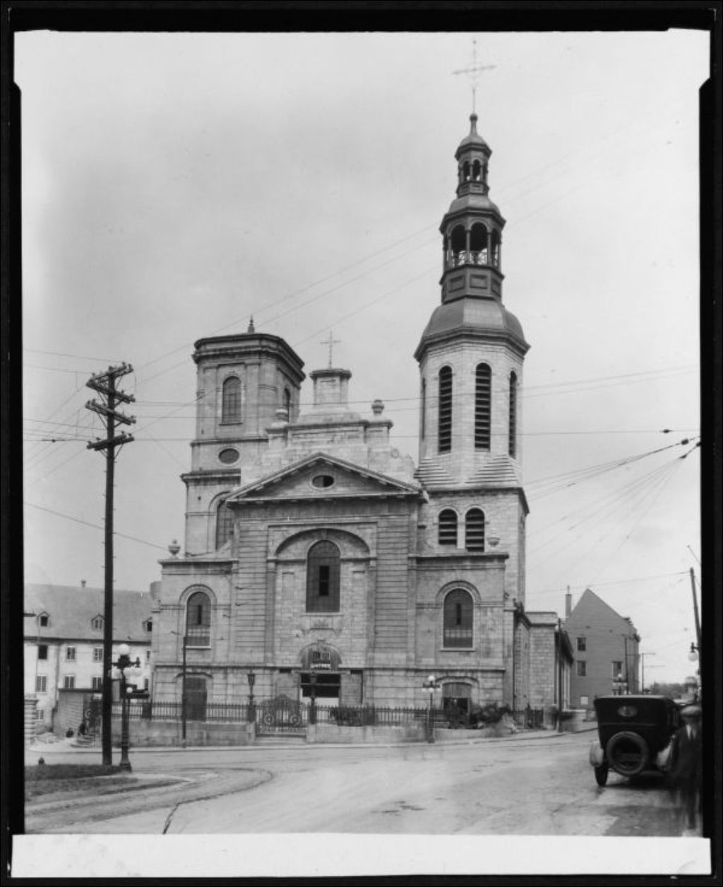 Façade de la basilique-cathédrale Notre-Dame-de-Québec, 1923, Archives nationales à Québec, Fonds J. E. Livernois Ltée, (03Q,P560,S2,D2,P116674), Photographe non identifié.