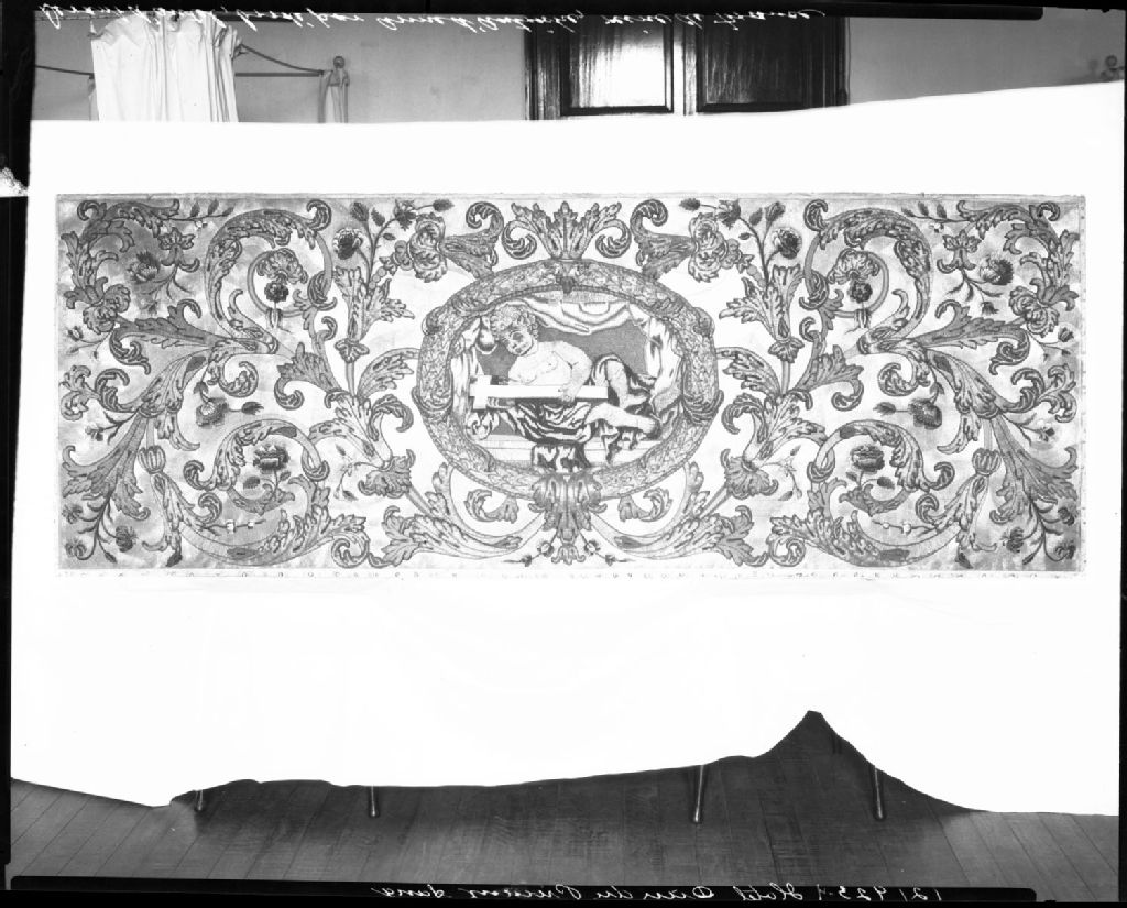 Autel brodé par la reine Anne d'Autriche à l'intérieur de l'hôpital Hôtel-Dieu du Précieux Sang de Québec, [Vers 1925], Archives nationales à Québec, Fonds J. E. Livernois Ltée, (03Q,P560,S2,D2,P121923-4), Photographe non identifié.