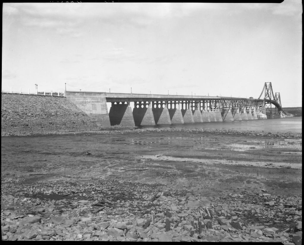 Pont de l'Île d'Orléans, 1935, Archives nationales à Québec, Fonds J. E. Livernois Ltée, (03Q,P560,S2,D2,P162377-1), Photographe non identifié.