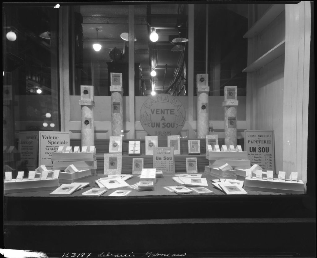 Vitrine de la Librairie Garneau Ltée, 1935, Archives nationales à Québec, Fonds J. E. Livernois Ltée, (03Q,P560,S2,D2,P163187), Photographe non identifié.