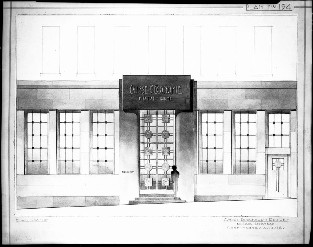 Reproduction photographique du plan de La Caisse d'Économie de Notre-Dame de Québec, 1939, Archives nationales à Québec, Fonds J. E. Livernois Ltée, (03Q,P560,S2,D2,P179440-1), Photographe non identifié.