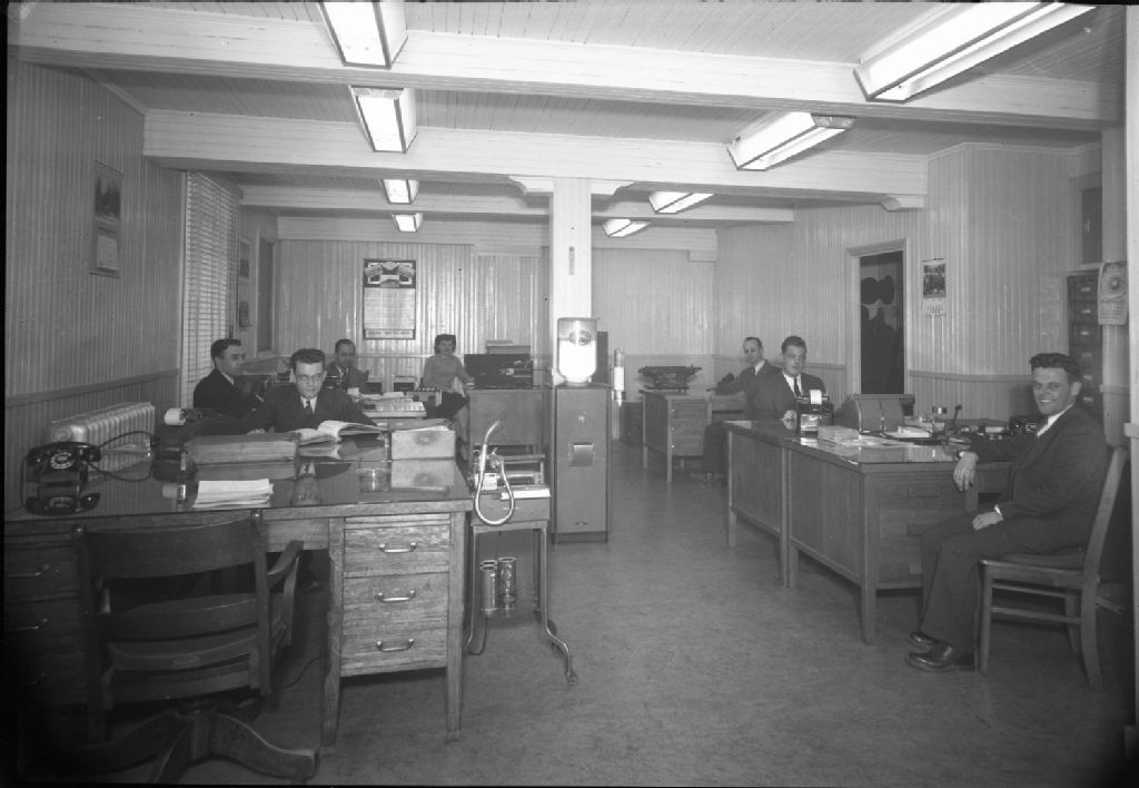 Employés de la Coopérative fédérée de Québec, [Entre 1950 et 1955], Archives nationales à Québec, Fonds J. E. Livernois Ltée, (03Q,P560,S2,D2,P206891-3), Photographe non identifié.