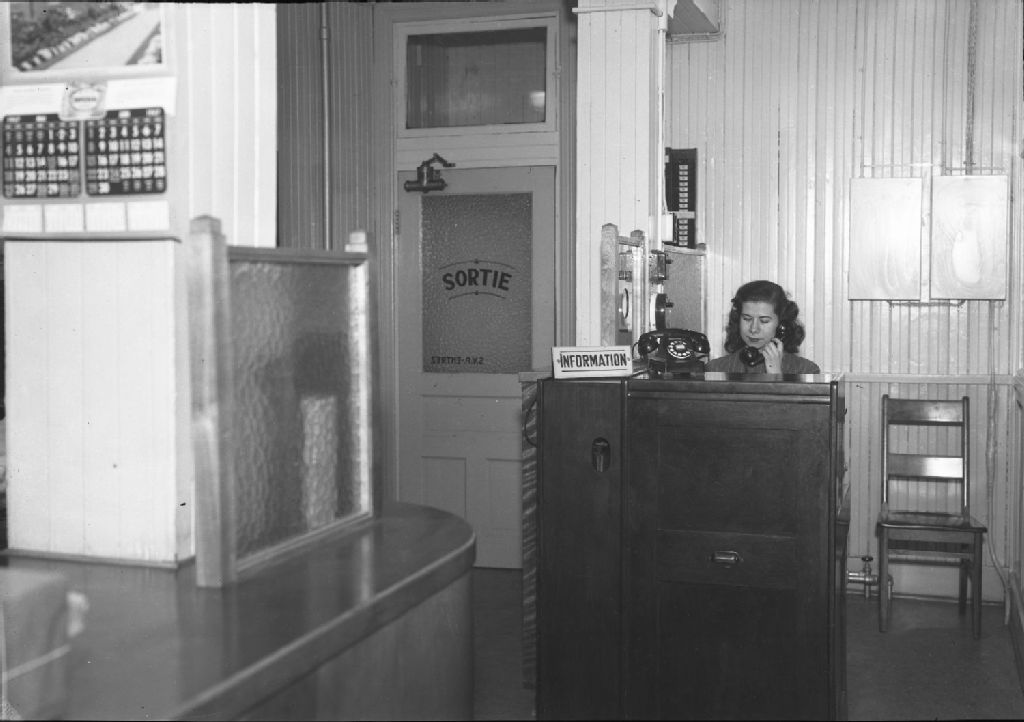 Employée à la réception de la Coopérative fédérée de Québec, [Entre 1950 et 1955], Archives nationales à Québec, Fonds J. E. Livernois Ltée, (03Q,P560,S2,D2,P206891-6), Photographe non identifié.