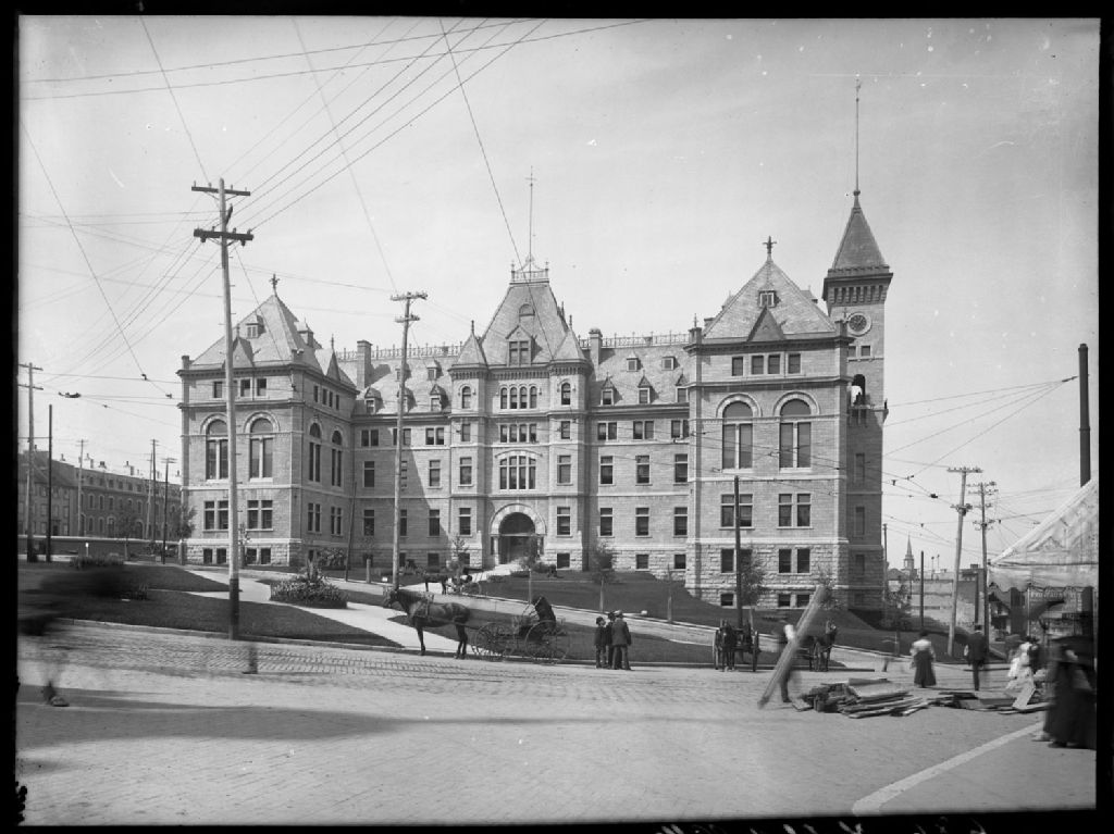 Façade de l'Hôtel de Ville de Québec, [vers 1900], Archives nationales à Québec, Fonds J. E. Livernois Ltée, (03Q,P560,S2,D2,P300304), Photographe non identifié.