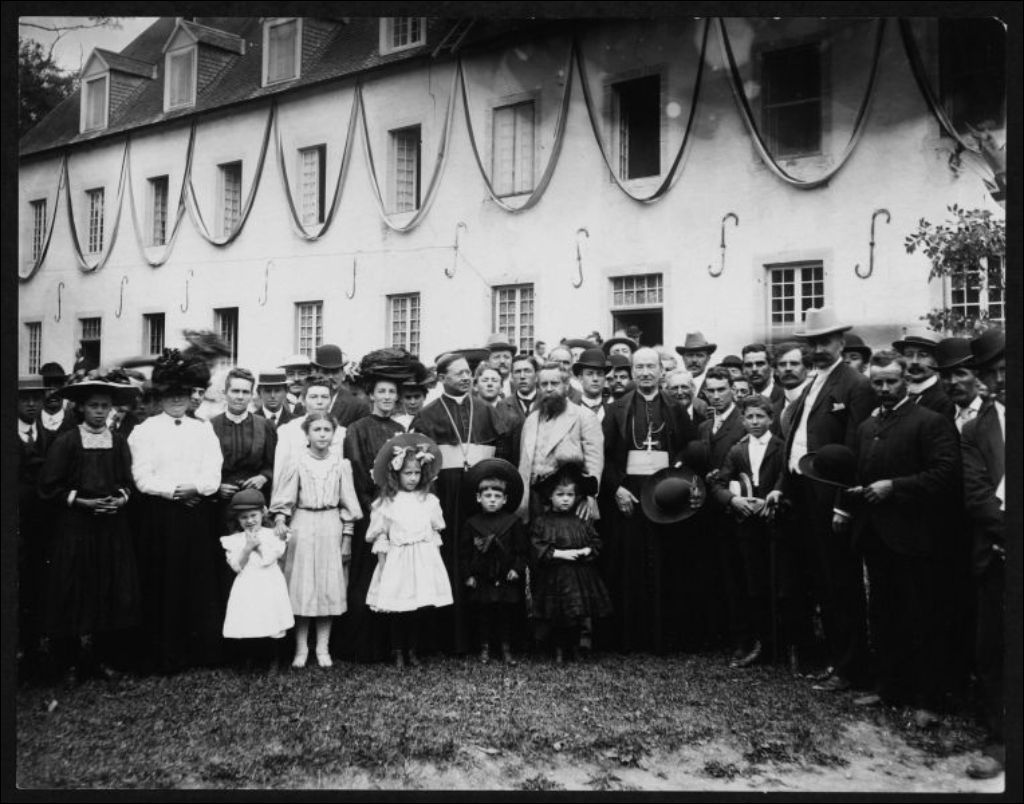 Photo de groupe devant le château Bellevue lors du Tricentenaire, 1908, Archives nationales à Québec, Fonds J. E. Livernois Ltée, (03Q,P560,S2,D2,P300332-2), Photographe non identifié.