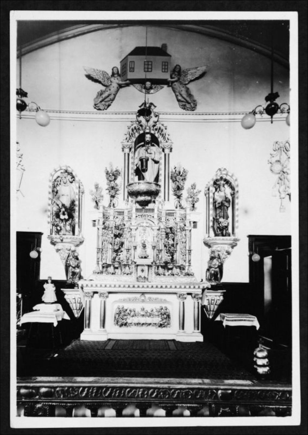 Intérieur de la chapelle des Hurons de Wendake, [vers 1880], Archives nationales à Québec, Fonds J. E. Livernois Ltée, (03Q,P560,S2,D2,P300349), Photographe non identifié.
