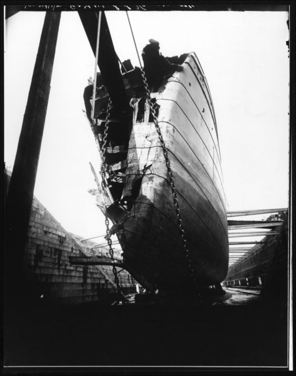 Le S. S. Vancouver en cale sèche lors de sa réparation au chantier naval de George T. Davie & Sons de Lauzon, [vers 1900], Archives nationales à Québec, Fonds J. E. Livernois Ltée, (03Q,P560,S2,D2,P80714-2), Photographe non identifié.