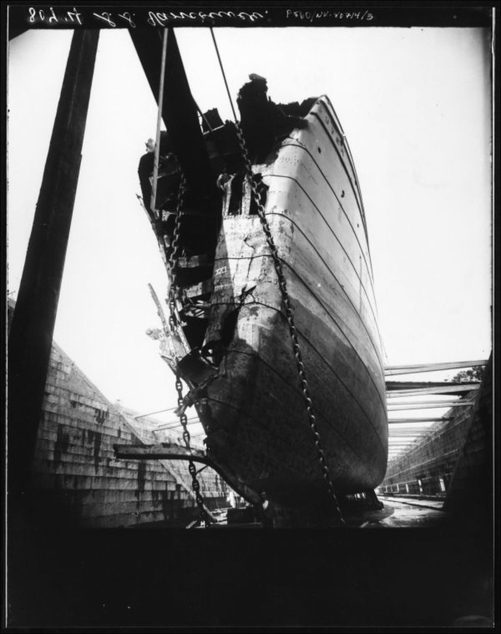 Le S. S. Vancouver en cale sèche lors de sa réparation au chantier naval de George T. Davie & Sons de Lauzon, [vers 1900], Archives nationales à Québec, Fonds J. E. Livernois Ltée, (03Q,P560,S2,D2,P80714-3), Photographe non identifié.