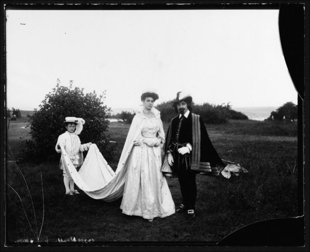 Personages historiques de Samuel de Champlain et de son épouse Hélène Boullé à la représentation des tableaux historiques à l'occasion des fêtes du Tricentenaire