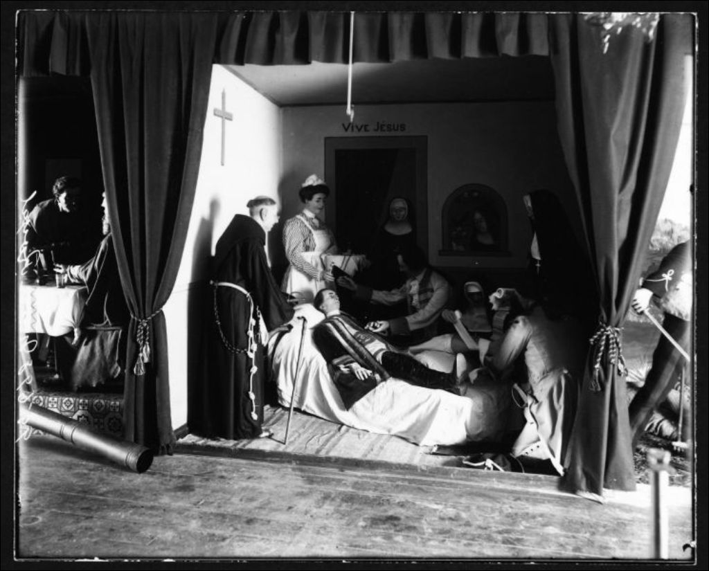 "Derniers moments de Montcalm" au Musée Royal de Sainte-Anne-de-Beaupré, [vers 1900], Archives nationales à Québec, Fonds J. E. Livernois Ltée, (03Q,P560,S2,D2,P95698-8), Photographe non identifié.