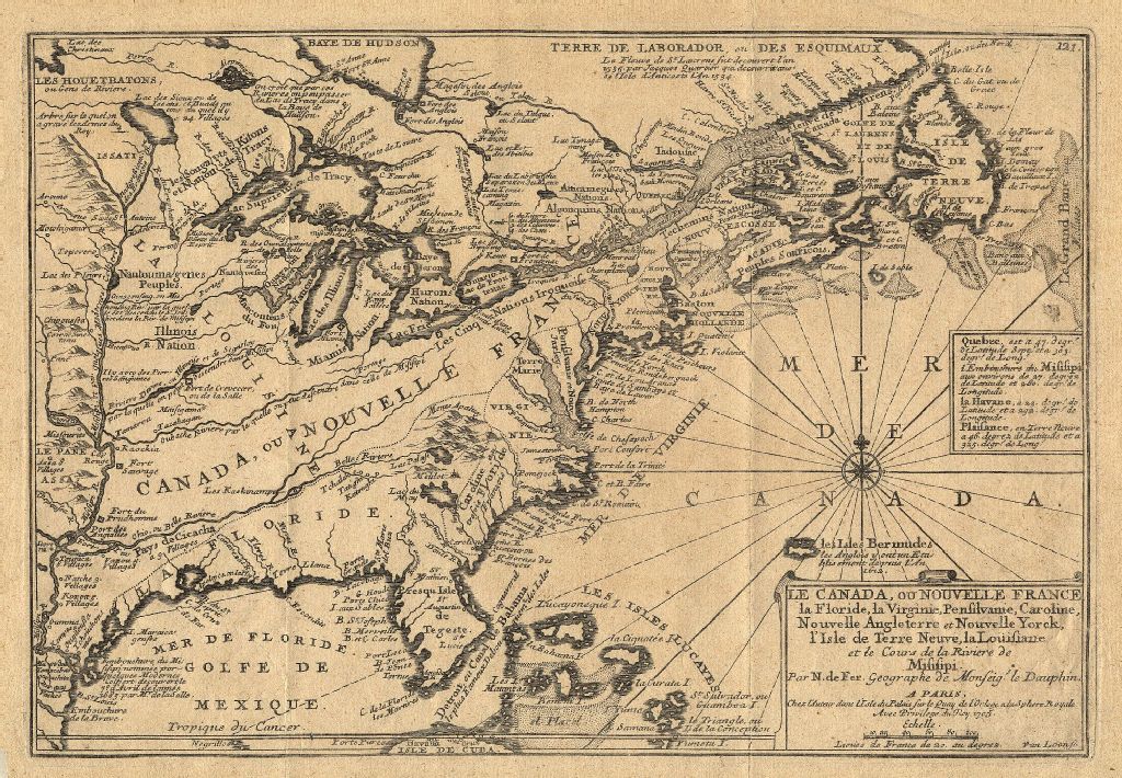 Le Canada, ou Nouvelle France, la Floride, la Virginie, Pensilvanie, Caroline, Nouvelle Angleterre et Nouvelle Yorck, l'Isle de Terre Neuve, la Louisiane et le Cours de la Rivière de Misisipi. Par N. de Fer Géographe de Monseig. le Dauphin, 1705