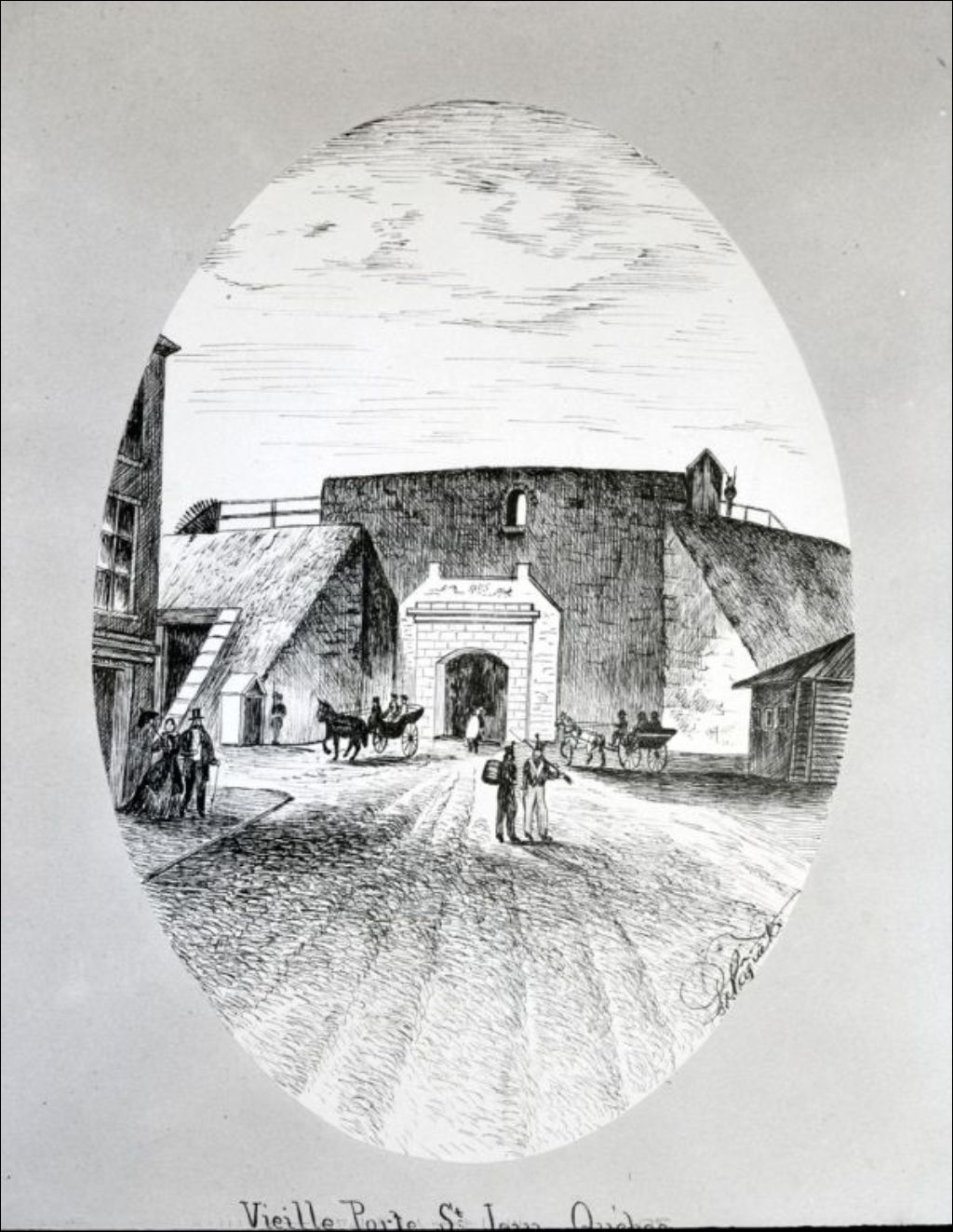 Vieille porte de Saint-Jean à Québec, bâtie en 1693, rebâtie en 1791, démolie en 1867