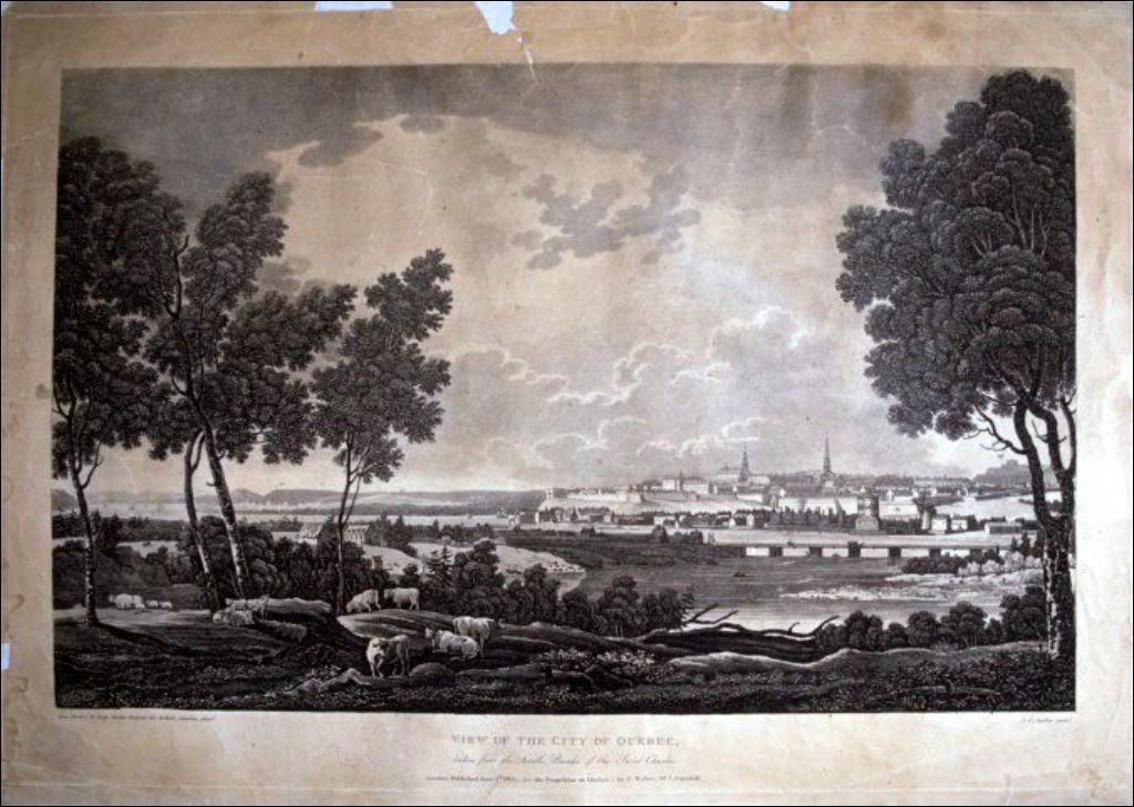 View of the city of Quebec, taken from the north banks of the Saint-Charles, 1805, Archives nationales à Québec, Collection initiale, (03Q,P600,S5,PGN11), J.C. Stadler, Georges Hériot.