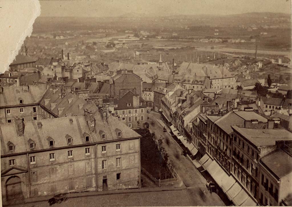 Quartier Vieux-Québec - Angle Rue des Jardins et Côte de la Fabrique - Vue panoramique prise du clocher de la Basilique Notre-Dame de Québec, [Vers 1870], Archives nationales à Québec, Collection initiale, (03Q,P600,S6,D1,P228), L.P. Vallée.