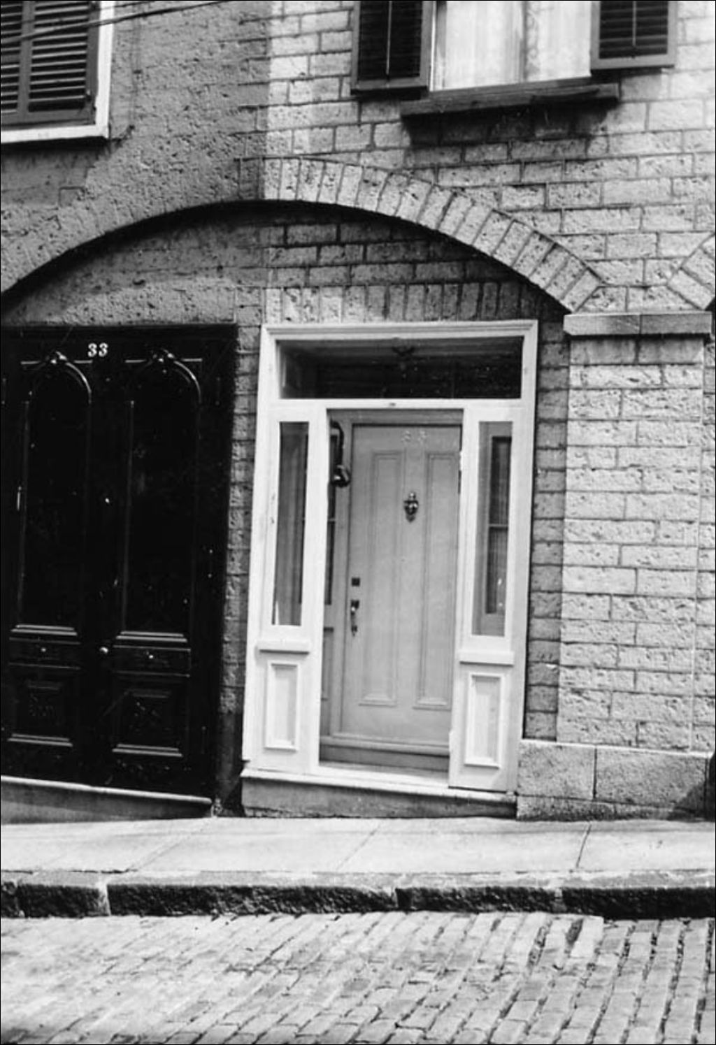 Quartier Vieux-Québec - Rue Laporte - Vue rapprochée de la façade des résidences aux numéros 33 et 35, [Vers 1940], Archives nationales à Québec, Collection initiale, (03Q,P600,S6,D1,P267), Photographe non identifié.
