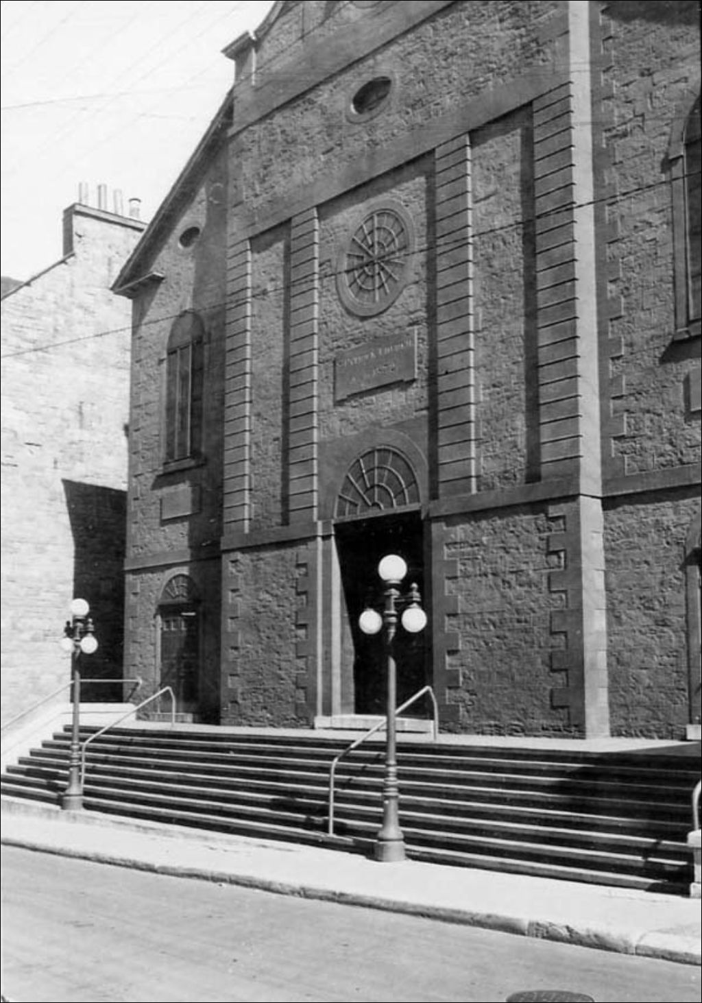Quartier Vieux-Québec - Rue McMahon - Église St. Patrick - Vue rapprochée de la porte centrale et latérale gauche