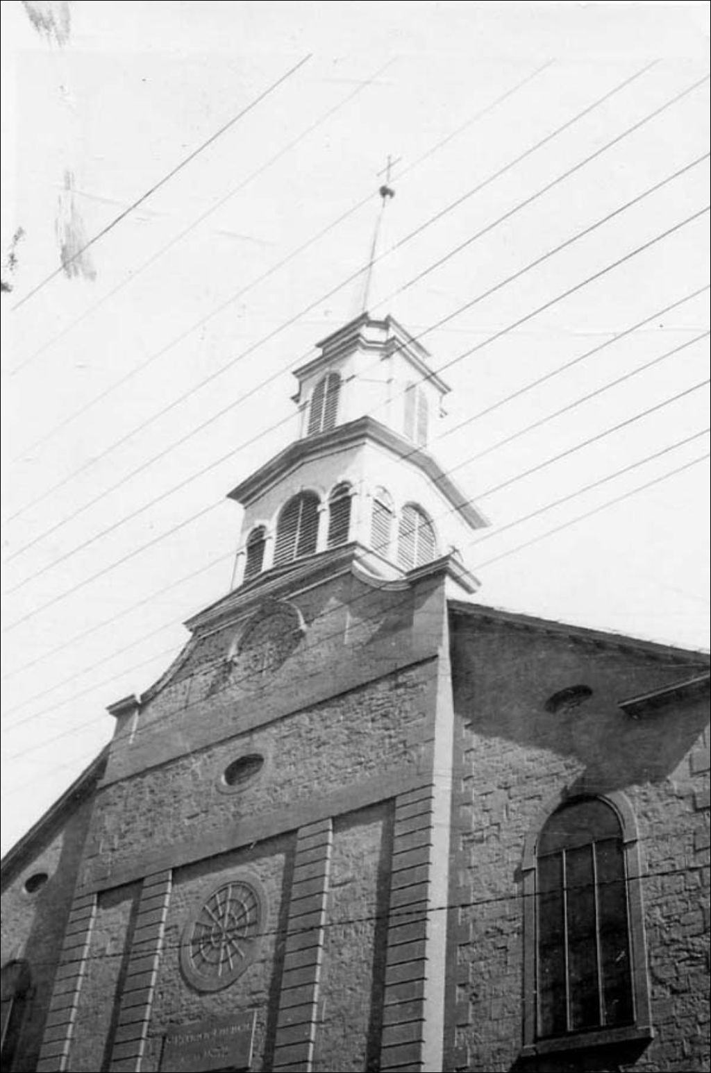Quartier Vieux-Québec - Rue McMahon - Église St. Patrick - Vue rapprochée en contre-plongée de la façade, [Vers 1940], Archives nationales à Québec, Collection initiale, (03Q,P600,S6,D1,P271), Photographe non identifié.