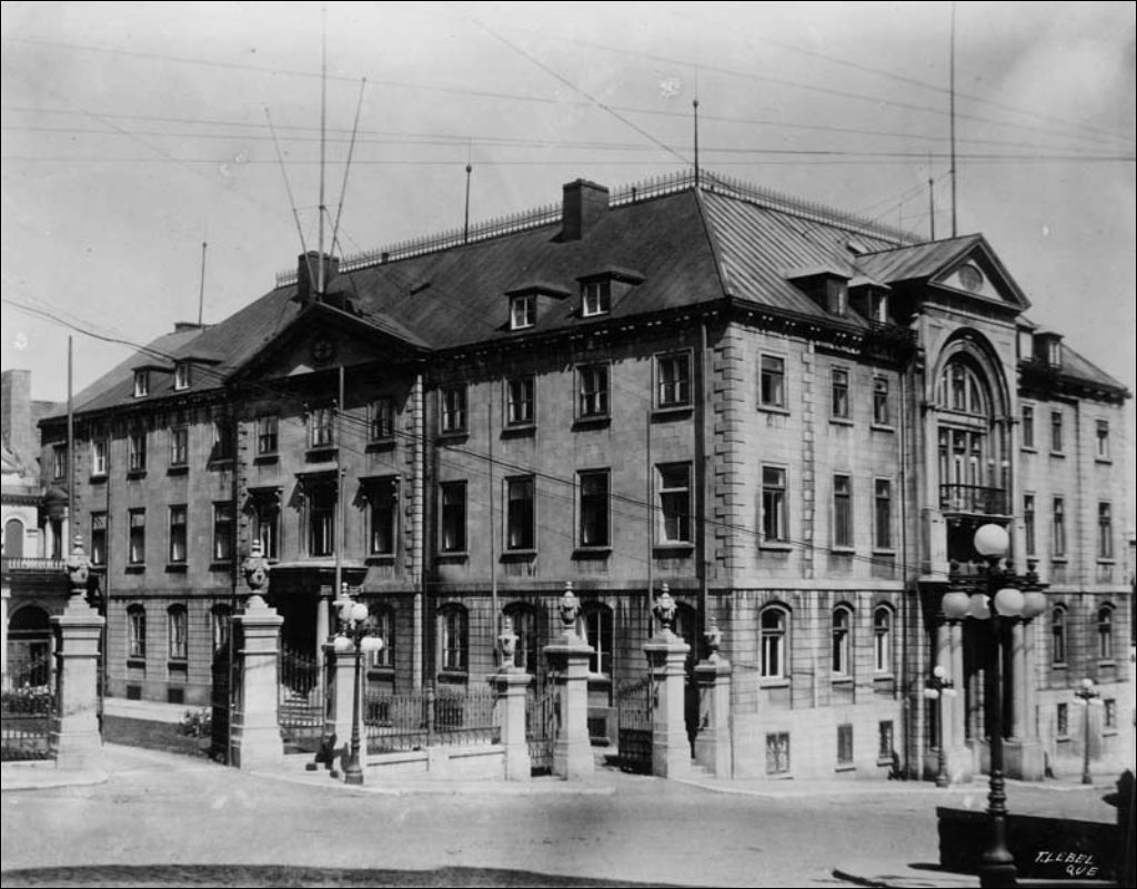Quartier Vieux-Québec - Rue Port-Dauphin - Palais épiscopal - Vue rapprochée du profil droit et de la façade