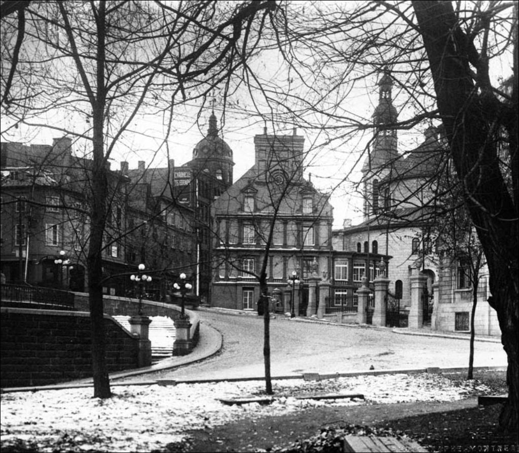 Quartier Vieux-Québec - Angle des Rues De Buade et Port-Dauphin - Presbytère Notre-Dame-de-Québec - Vue éloignée prise du parc Montmorency