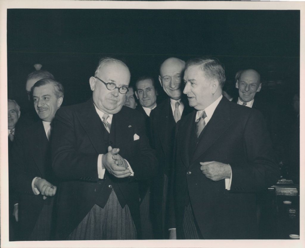 Lors de la visite du Président de la France Vincent Auriol à ses côtés Maurice Duplessis, Robert Schuman et Gaspard Fauteux