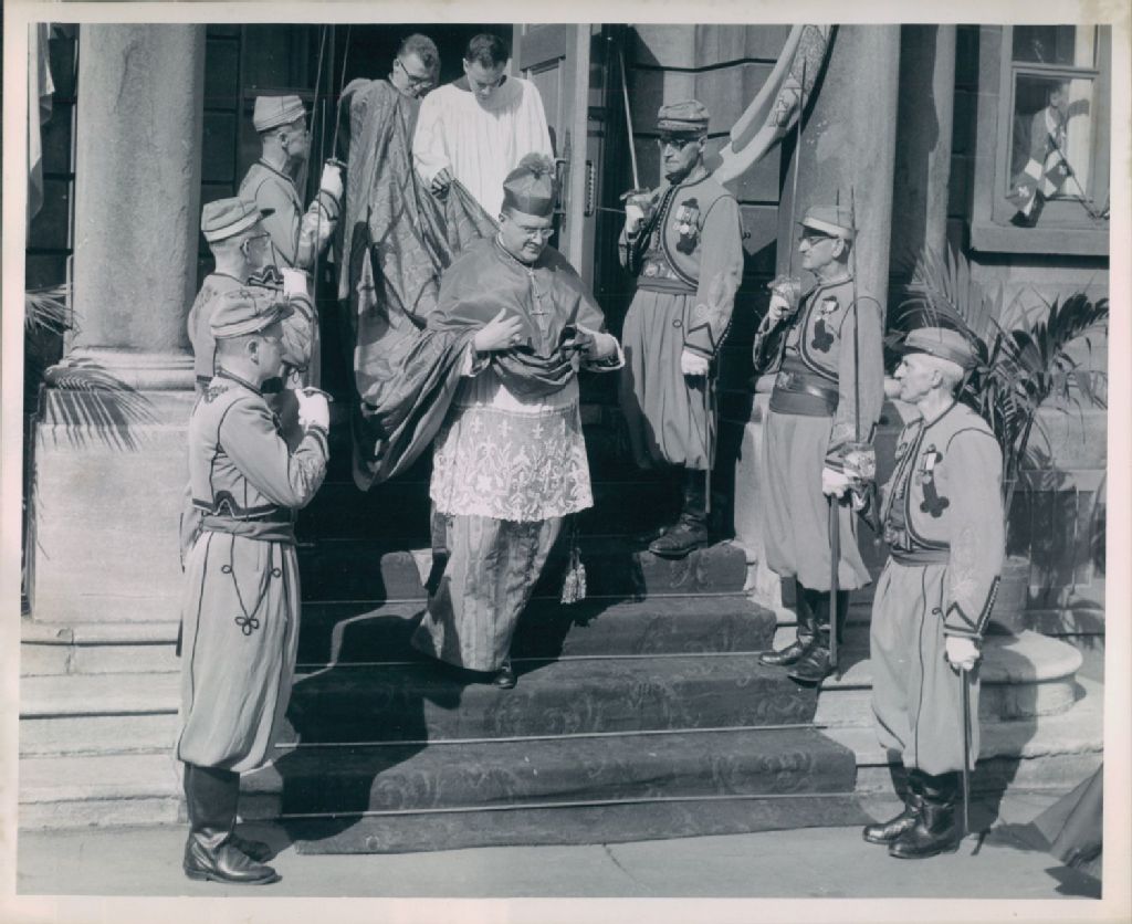 Quartier Vieux-Québec - Rue De Buade - Visite officielle au palais épiscopal de Notre-Dame-de-Québec, juin 1959, Archives nationales à Québec, Collection initiale, (03Q,P600,S6,D1,P495), Photographe non identifié.
