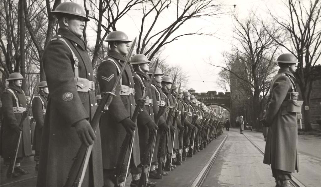 Quartier Saint-Jean-Baptiste - Grande Allée Est - Croix du Sacrifice - Cérémonie anniversaire de l'armistice - Plan rapproché du regroupement militaire