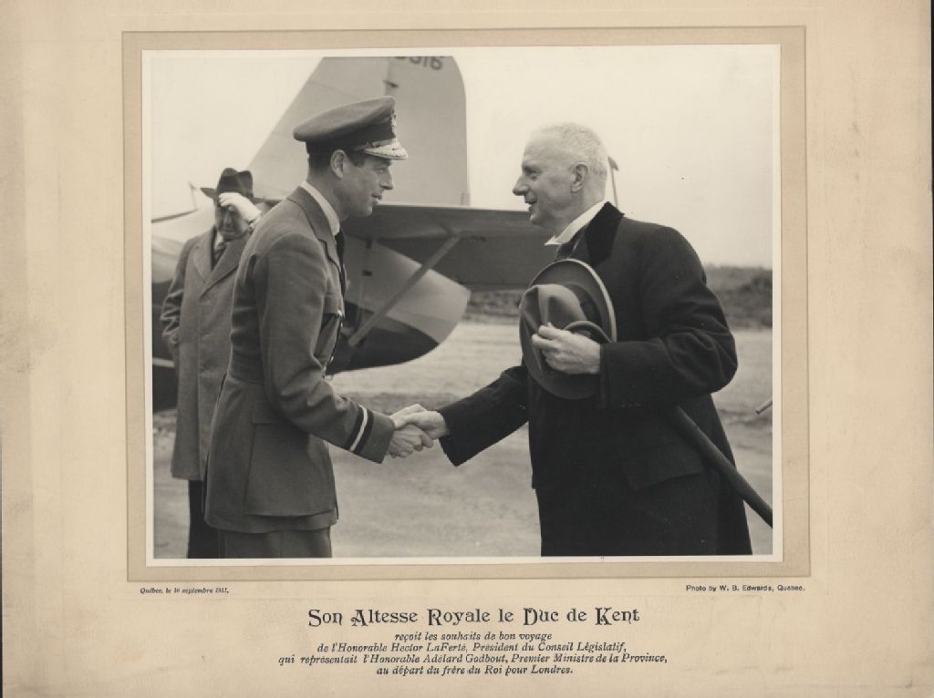 Les salutations de la Province au prince George duc de Kent par Hector LaFerté pour son retour à Londres en avion