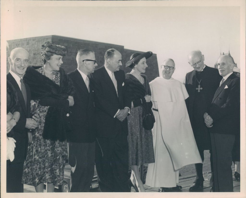 Groupe lors du congrès des Médecins de gauche à droite C.-A. Gauthier, Madame Mathieu Samson, Mathieu Samson, Renault Lemieux, Madame Renault Lemieux, Georges-Henri Lévesque, Philip Carrington et Vincent Massey