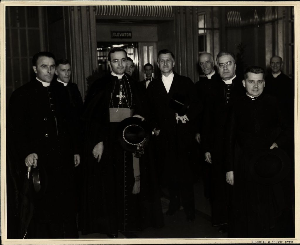 - L'arrivée de Ildebrando Antoniutti accompagné de Lucien Borne, Chrysoloque Desrochers, Paul Bernier et Cyrille Gagnon