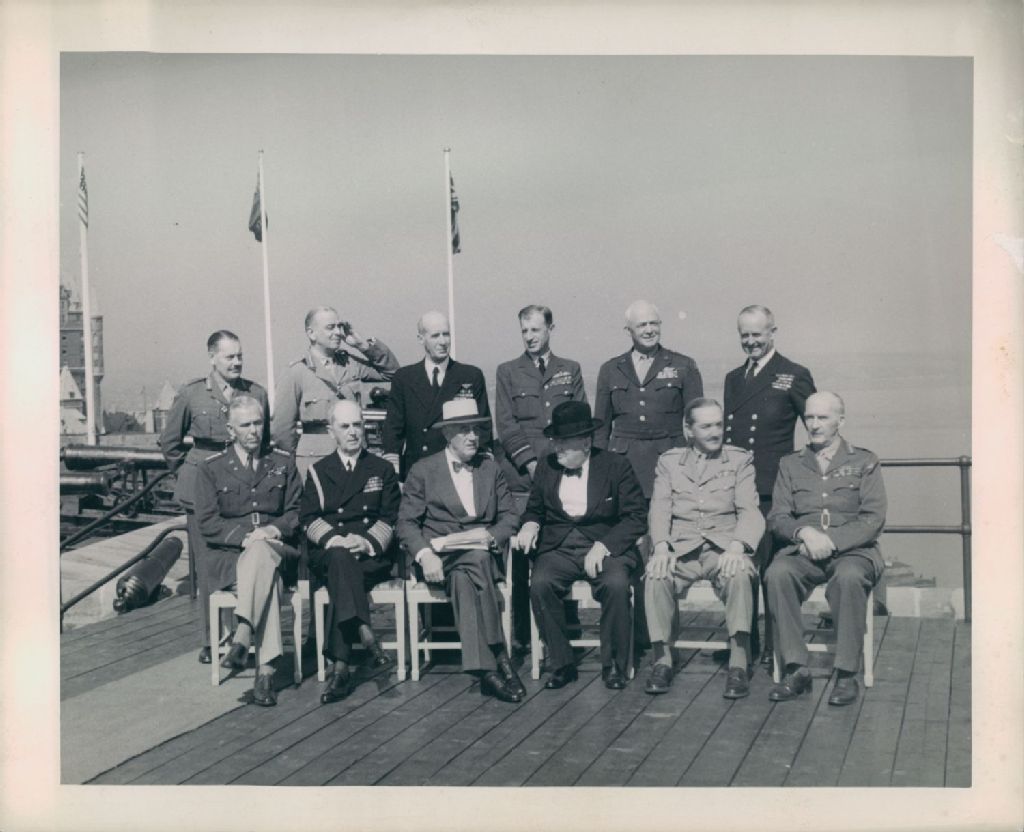 Groupe des participants à la Conférence de Québec debout de g. à d. , assis de g. à d. Franklin Delano Roosevelt, Winston Churchill, comte d'Athlone