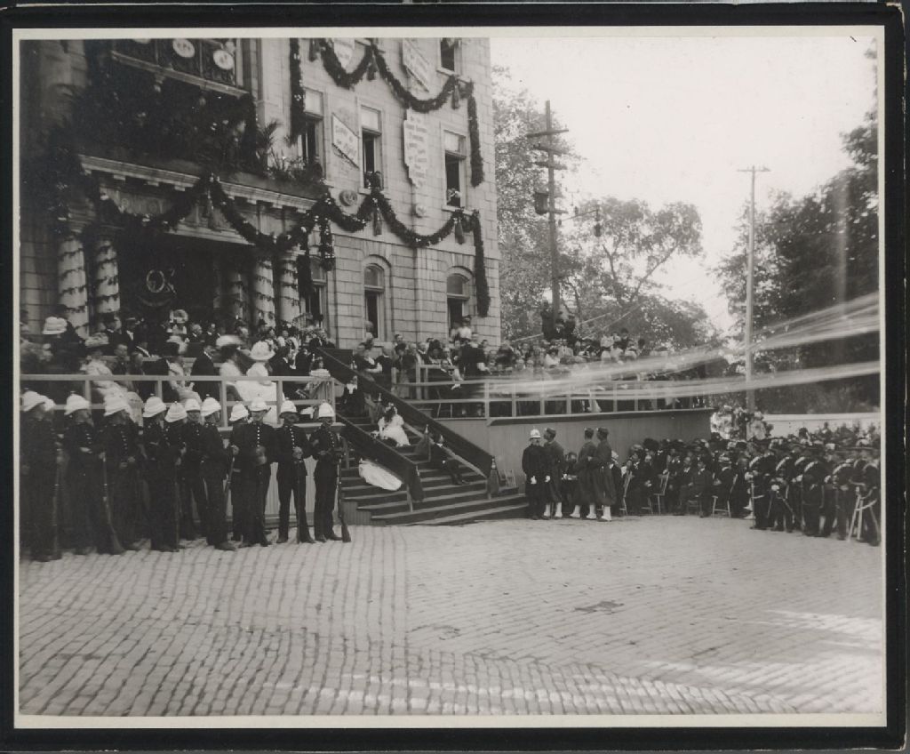 Quartier Vieux-Québec - Rue Port-Dauphin - Palais épiscopal - Monument Laval - Dévoilement