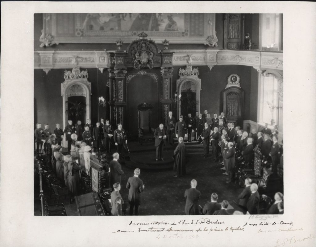 Quartier Saint-Jean-Baptiste - Parlement de Québec - Assemblée législative - Cérémonie officielle, 31 octobre 1923, Archives nationales à Québec, Collection initiale, (03Q,P600,S6,D1,P831), J. E. Livernois.