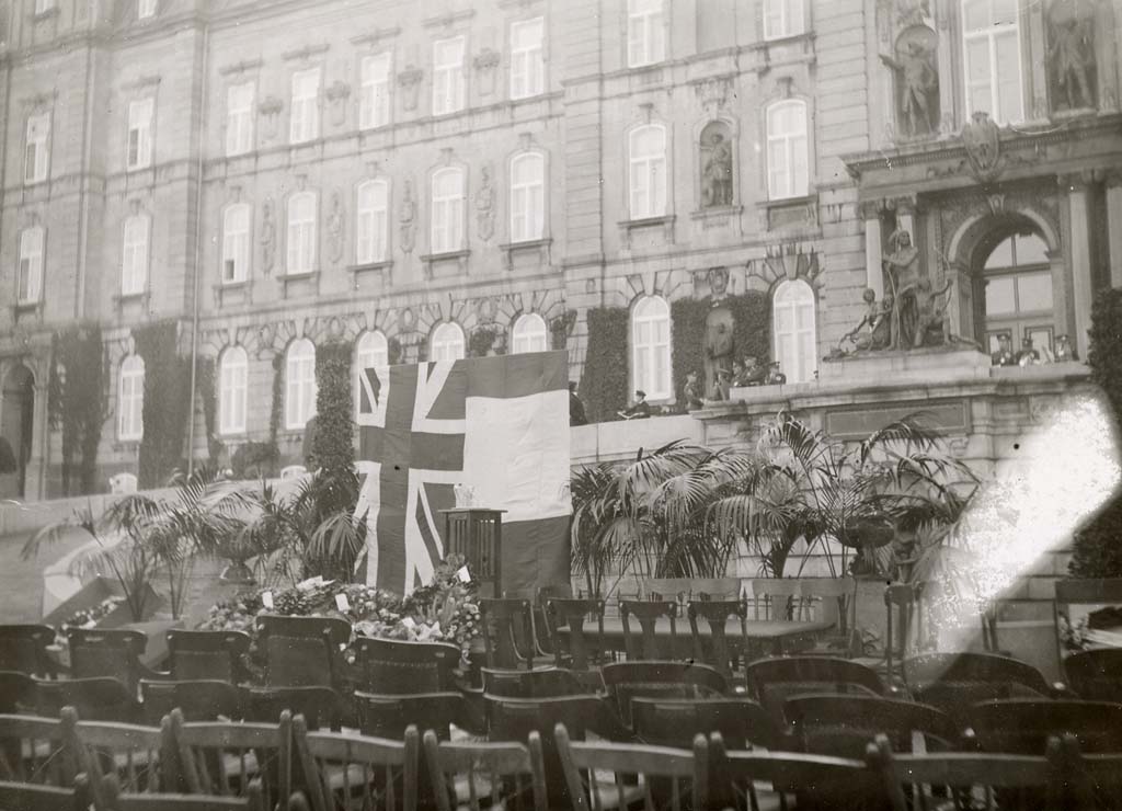 Quartier Saint-Jean-Baptiste - Avenue Honoré-Mercier - Parlement de Québec - Dévoilement du monument La Vérendrye - Plan rapproché de l'estrade officielle