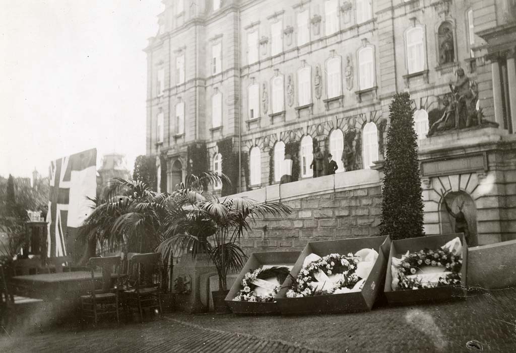 Quartier Saint-Jean-Baptiste - Avenue Honoré-Mercier - Parlement de Québec - Dévoilement du monument La Vérendrye - Plan rapproché du côté droit de l'estrade officielle