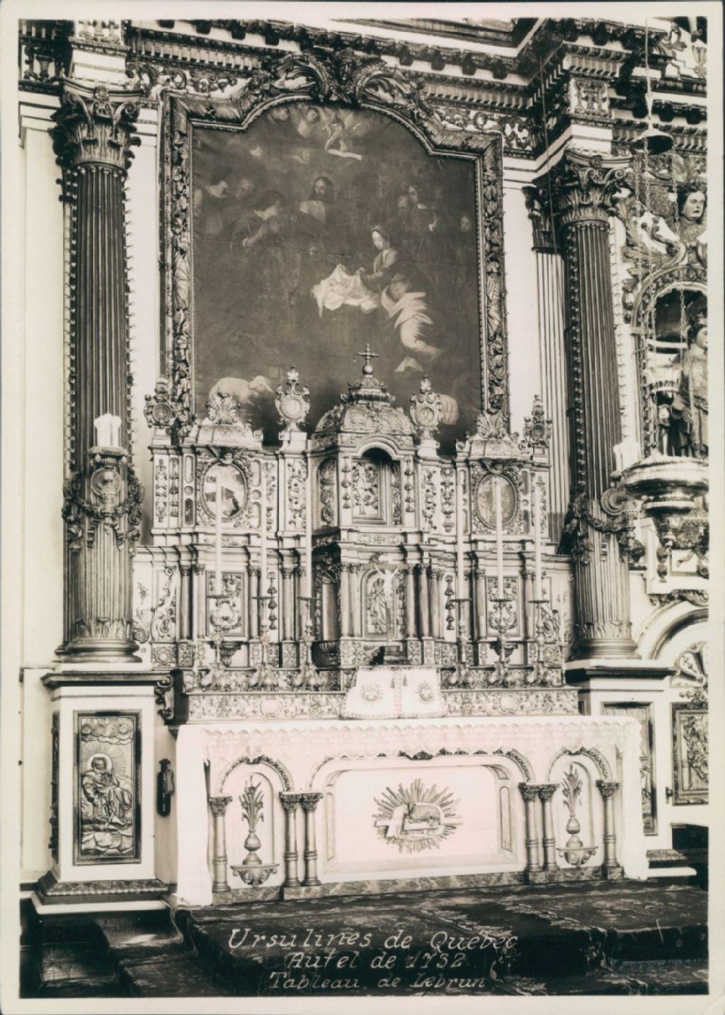 Quartier Vieux-Québec - Ursulines de Québec - Chapelle - Maître-autel, [Vers 1930], Archives nationales à Québec, Collection initiale, (03Q,P600,S6,D1,P911), Livernois Limitée.