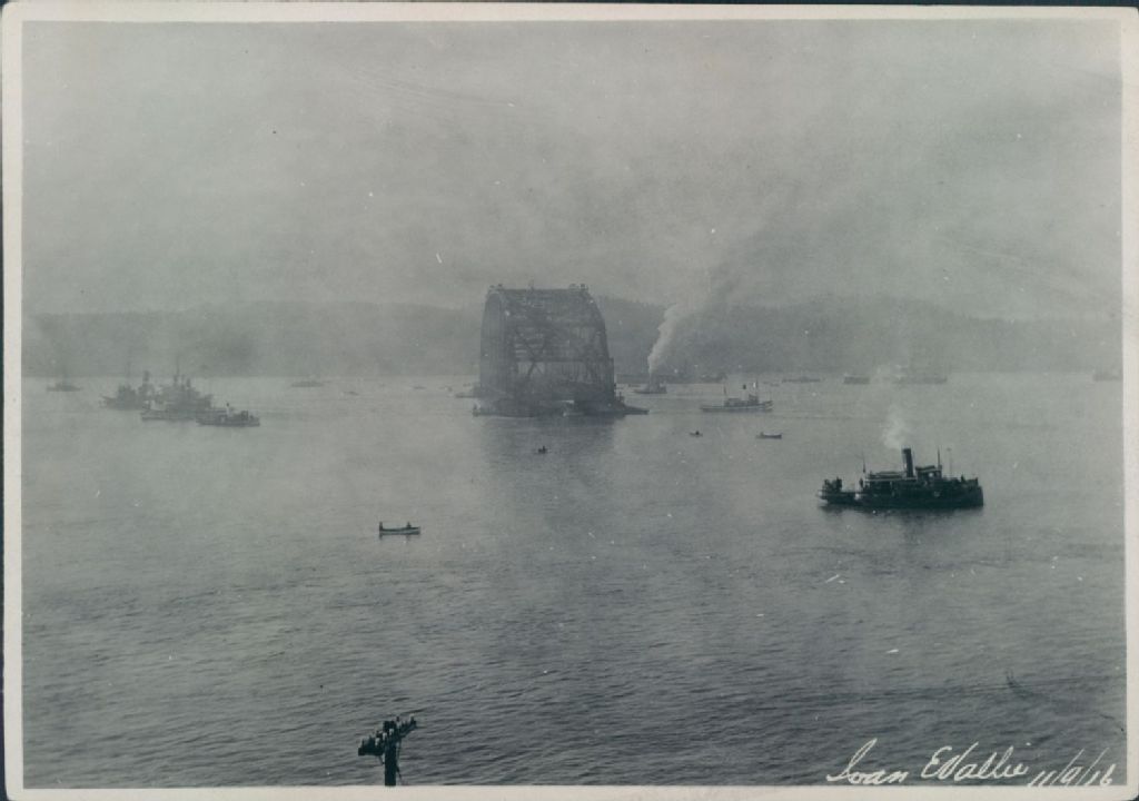 Pont de Québec – Construction, septembre 1916, Archives nationales à Québec, Collection initiale, (03Q,P600,S6,D2,P76), Ivan E. Vallée.