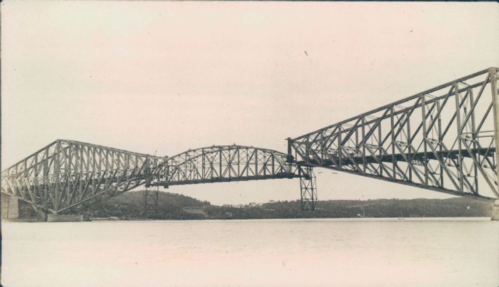 Pont de Québec – Construction, 1917, Archives nationales à Québec, Collection initiale, (03Q,P600,S6,D2,P97), Photographe non identifié.