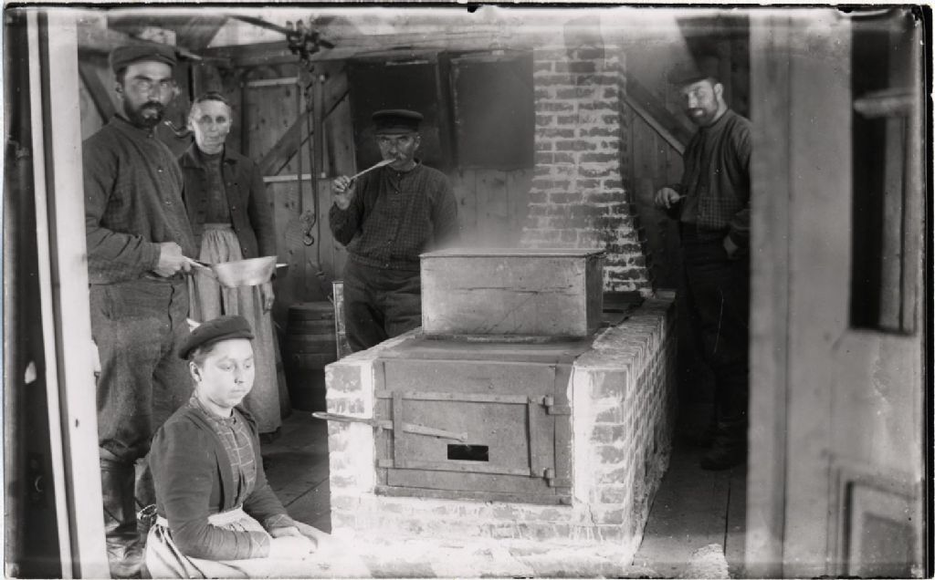 Saint-Nicolas - Érablière - Cabane à sucre - Intérieur, [Vers 1910], Archives nationales à Québec, Collection initiale, (03Q,P600,S6,D3,P78), Photographe non identifié.