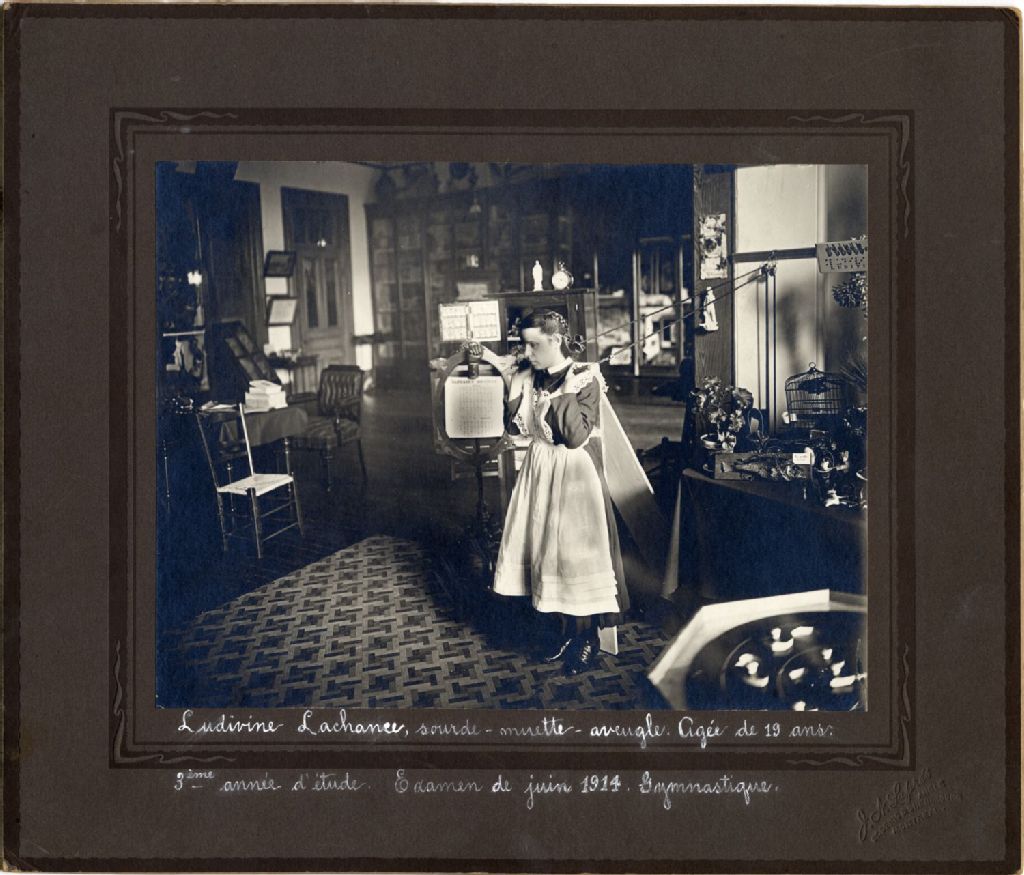 Montréal - Rue Saint-Denis - Institution des sourdes-muettes - Ludivine Lachance - Examen, juin 1914, Archives nationales à Québec, Collection initiale, (03Q,P600,S6,D4,P105), J. N. Laprés.