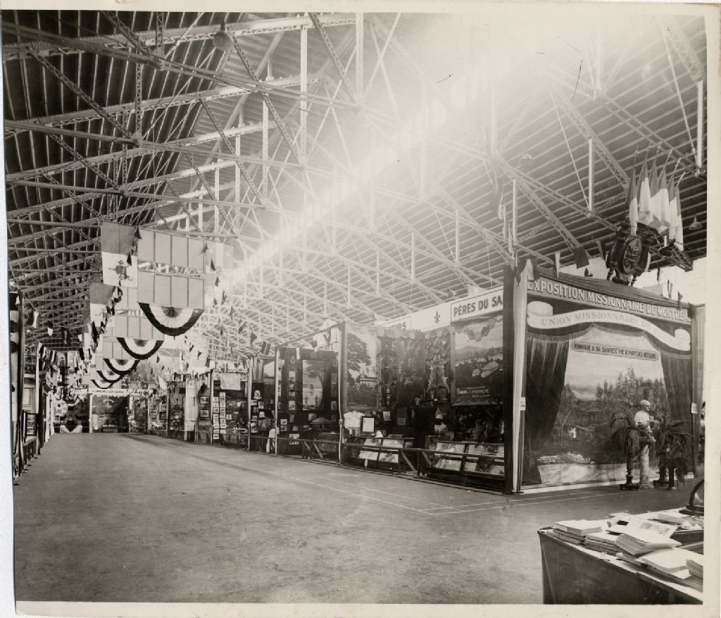 Montréal - Rue Craig Est - Manège militaire - Exposition missionnaire de Montréal - Stands, septembre 1930, Archives nationales à Québec, Collection initiale, (03Q,P600,S6,D4,P14), Photographe non identifié.