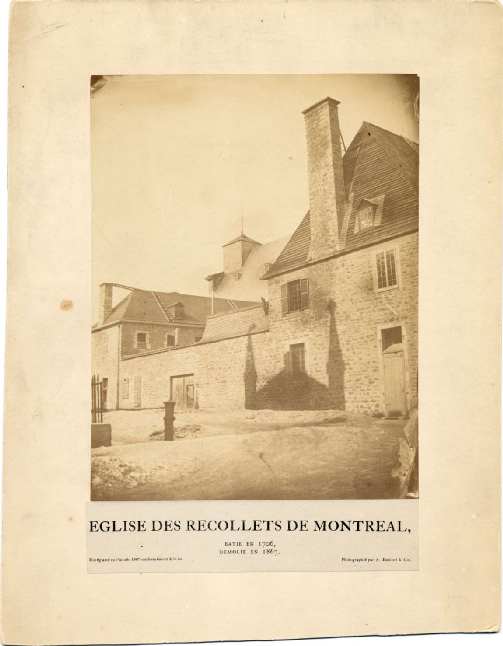 Montréal - Rue Notre-Dame Ouest - Église des Récollets de Montréal (1706-1867), 1867, Archives nationales à Québec, Collection initiale, (03Q,P600,S6,D4,P47), A. Bazinet & Cie.